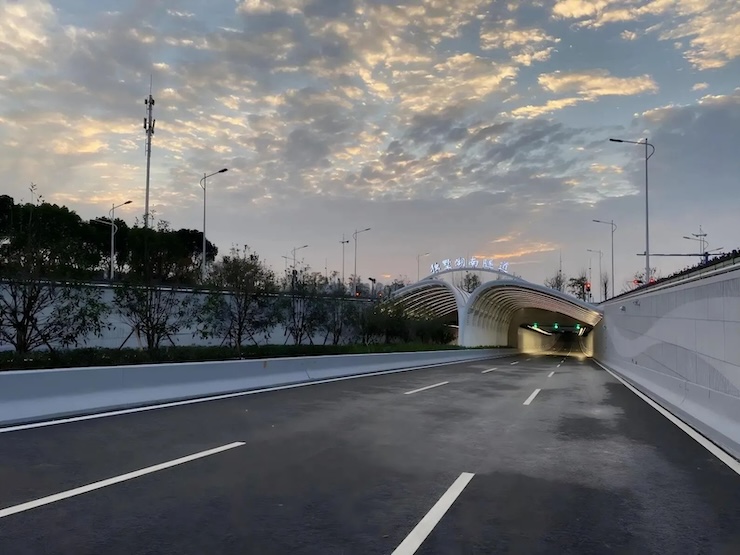 The Second Passage of Dushu Lake (Dushu Hunan Tunnel) is an important component of the "Eight Horizontals" transportation framework system planned and formed in Suzhou City. The project crosses the southern part of Suzhou Dushu Lake, connecting the administrative divisions of Wuzhong District and the Industrial Park. It is connected to Dongfang Avenue to the west and passes through Suzhou Shenwai Port, Dushu Island, Dushu Lake, and Wanshou Street in the form of a tunnel to the east before connecting to Chuangyuan Road. The project has a total length of 3.93 kilometers and adopts the standard of urban main roads. The main line is designed with a speed of 50 km/h. It is China's first underwater navigation canal shaped double layered tunnel, integrating "bridge, island, tunnel, and underwater ramp".