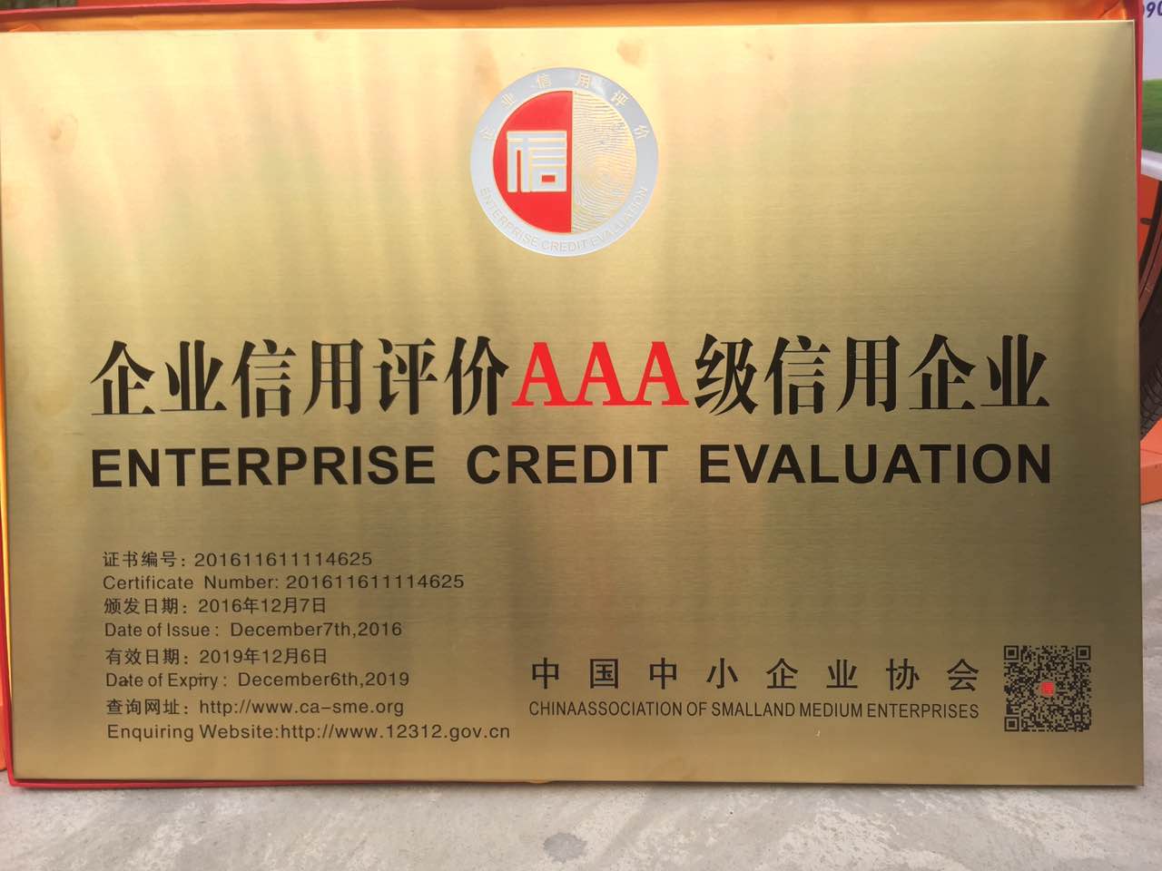 Credit AAA" rating and passed "National High-tech Enterprise"