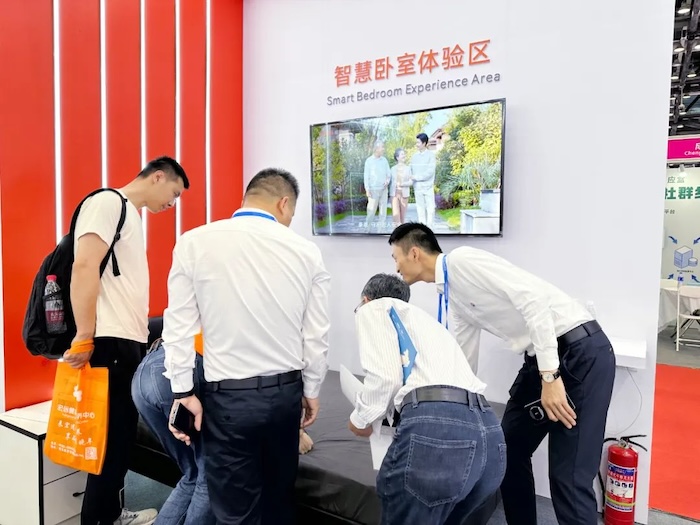 本次展會,豪恩打造了智慧臥室體驗區(qū)。來訪嘉賓不僅可以現(xiàn)場體驗健康監(jiān)護(上臂式電子血壓計、睡眠監(jiān)護等)產(chǎn)品,體驗到足不出戶就能進行健康監(jiān)測的便利,也能在自由出入間,享受安全監(jiān)護(緊急拉繩按鈕、人體跌倒探測器、人體存在探測器、煙霧報警器等)產(chǎn)品帶來的安全感。