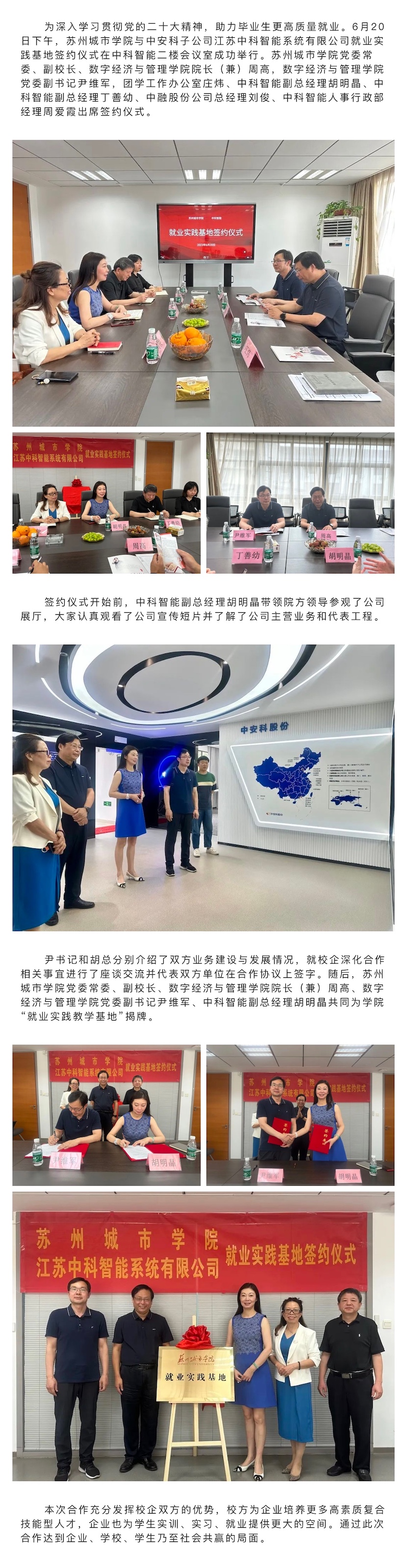 蘇州城市學院與中安科子公司江蘇中科智能系統(tǒng)有限公司簽約就業(yè)實踐基地