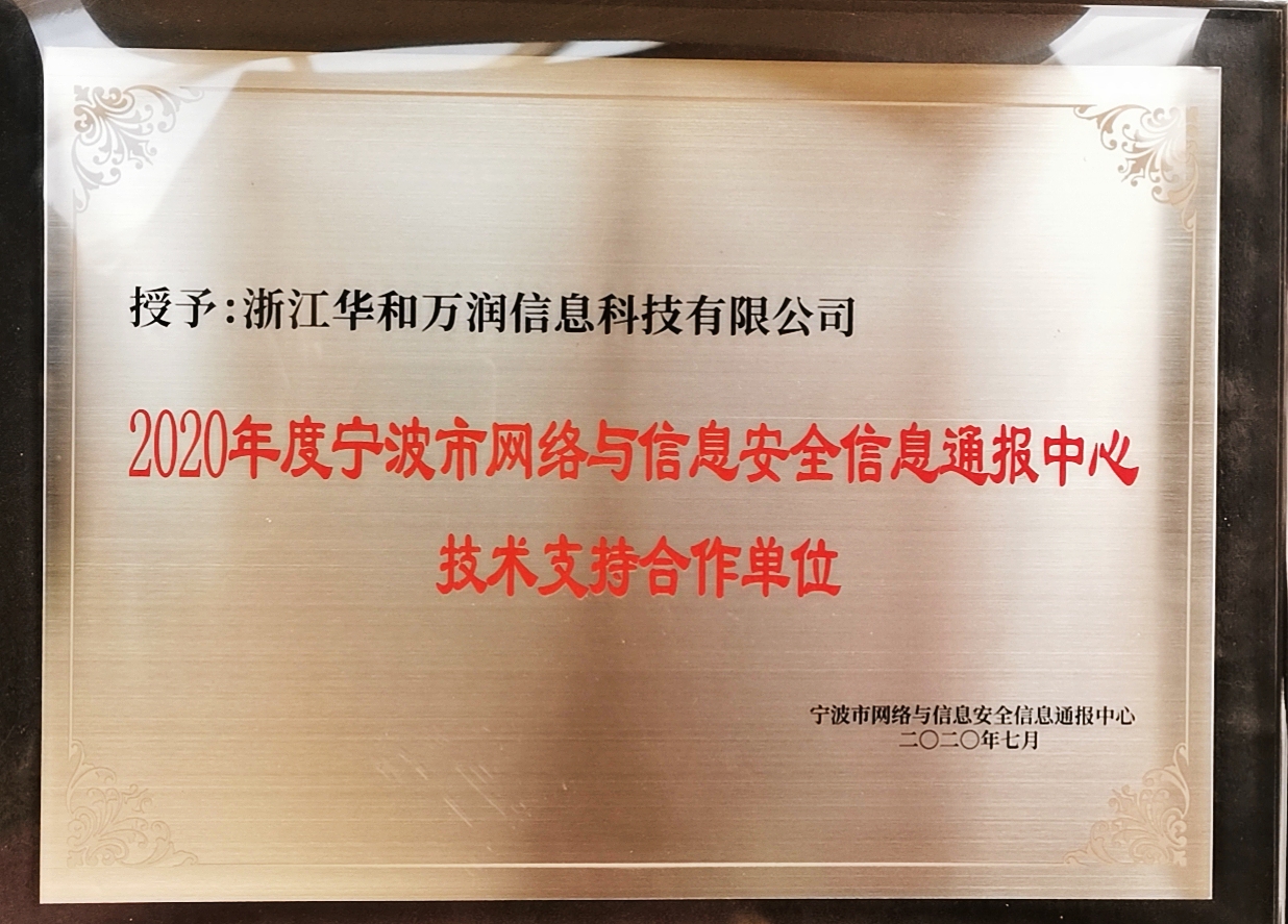 華和萬潤能夠榮獲「2020年度寧波市網(wǎng)絡(luò)與信息安全信息通報中心技術(shù)支持合作單位」、「2019-2020協(xié)會突出貢獻獎」,離不開政府、協(xié)會與客戶的鼎力支持。華和萬潤擁有全國性的服務(wù)體系,在北京、天津、上海、深圳、云南、湖北、河南等地設(shè)立了辦事機構(gòu),已發(fā)展成為一家業(yè)務(wù)覆蓋全國的高新技術(shù)企業(yè)。