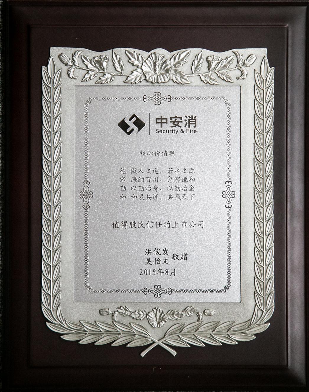 圖3,股東代表贈送的“值得股民信任的上市公司”獎牌。