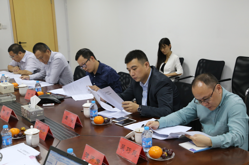 董事會(huì)、監(jiān)事會(huì)會(huì)議現(xiàn)場(chǎng) 董事長(zhǎng)涂國(guó)身(左二);董事:周俠(右二)、吳巧民(右一)、郝軍(左一);董事會(huì)秘書(shū)付欣(右三)