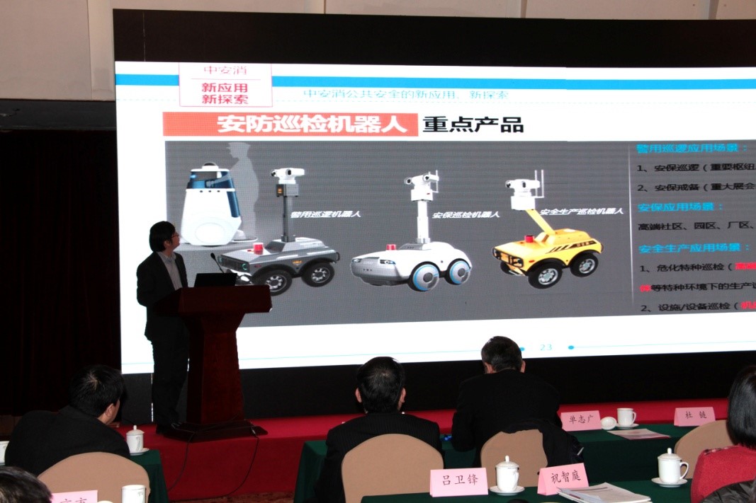 徐濤先生以“公共安全的大數(shù)據(jù)變革”為報(bào)告主題,闡述了中安消在智慧城市、智慧社區(qū)、平安城市、安防等重大領(lǐng)域的優(yōu)秀解決方案,在報(bào)告中,徐濤先生重點(diǎn)介紹了中安消技術(shù)在行業(yè)內(nèi)率先探索應(yīng)用的智能安防機(jī)器人。安防巡檢機(jī)器人在大安防領(lǐng)域的新應(yīng)用,有效彌補(bǔ)傳統(tǒng)安防的諸多弊端,吸引了現(xiàn)場與會(huì)嘉賓的熱切關(guān)注。