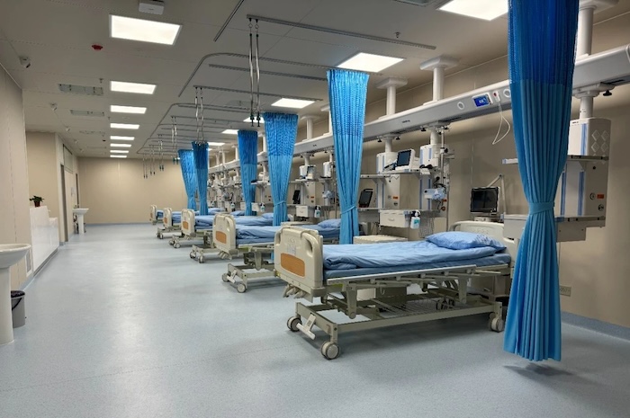 其中負(fù)三層醫(yī)學(xué)放療區(qū)、負(fù)一層EICU、負(fù)一層急救中心、負(fù)一層CT室、一層靜脈配液中心、二層影像中心、二層呼吸內(nèi)科、二層DSA手術(shù)室、三層檢驗(yàn)中心、三層?jì)D科、三層產(chǎn)科門(mén)診手術(shù)室、四層消化內(nèi)鏡、四層日間手術(shù)室、四層病理科、四層口腔科、五層手術(shù)中心、五層手術(shù)部更衣區(qū)、五層眼科門(mén)診、六層ICU、六層輸血科、六層凈化設(shè)備機(jī)房、七層血液透析、八層產(chǎn)科、九層NICU、十層PICU、十一層C臂室、十三層燒傷病房、十六層眼科手術(shù)室、十八層CCU合計(jì)約23000平米,共計(jì)26個(gè)科室,均由威大醫(yī)療負(fù)責(zé)施工完成。