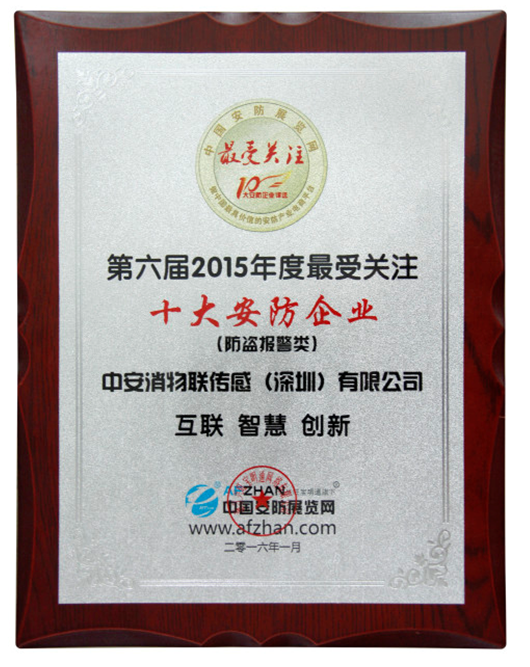 2016年03月29日,第六屆“思正杯”最受關(guān)注十大安防企業(yè)評選頒獎(jiǎng)盛典暨第二屆中國安防新產(chǎn)品/新技術(shù)研討會(huì)在杭州拉開序幕。中安消物聯(lián)傳感(深圳)有限公司(以下簡稱“中安消物聯(lián)傳感”)在本次活動(dòng)中榮獲“2015年度最受關(guān)注十大安防企業(yè)(防盜報(bào)警類)”稱號。