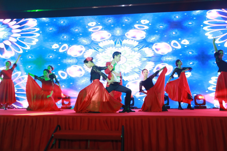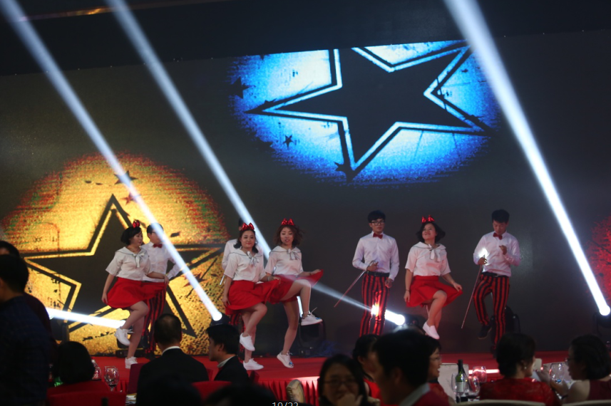在中安科股份本部的一曲激烈昂揚的《斗牛舞》中,晚宴拉開帷幕。8名女郎舞姿干凈利落、紅色裙裾翻飛,男伴氣宇宣揚,體現(xiàn)了西班牙斗牛士勇往直前的氣概;中安消投資公司的相聲《做啥都要創(chuàng)新》,一逗一捧相得益彰、笑料百出;衛(wèi)安集團的《月亮代表我的心》吉他彈唱浪漫滿場;中科智能的創(chuàng)意朗誦《中科星愿》,在黑暗中用星星點點的光斑演繹了動人的企業(yè)歷程;華和萬潤的《江南舞:煙花三月》舞姿曼妙婀娜,盡顯江南水鄉(xiāng)的詩意柔情;中安消技術(shù)的歌曲串燒《中安消大家庭》溫情而暖心;上海擎天由兩位才華洋溢的員工家屬小朋友帶來了歡快的尤克里里樂器演奏;常州明景的舞蹈《Darling》俏皮輕快、時尚動感;主持人的《燕尾蝶》獨唱優(yōu)美動聽、爆發(fā)力十足;最后登臺的《貓步輕俏》,舞者從臺上舞動到臺下,嗨翻全場。晚會上還穿插進行了豐富有趣的游戲互動,笑聲不斷、驚喜連連。