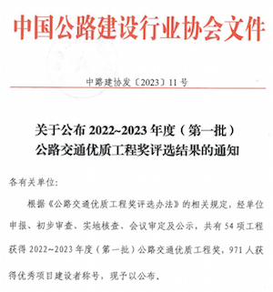 公路交通優(yōu)質(zhì)工程獎,簡稱“李春獎”,得名于隋朝設(shè)計(jì)建造趙州橋的著名工匠李春,由中華人民共和國交通運(yùn)輸部與中國公路建設(shè)行業(yè)協(xié)會聯(lián)合設(shè)立,是與中國土木工程詹天佑獎、中國建設(shè)工程魯班獎、茅以升科學(xué)技術(shù)獎齊名的中國公路行業(yè)最高質(zhì)量獎。