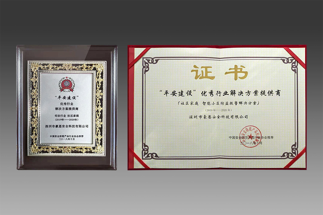 在同期舉辦的“平安城市”建設推薦優(yōu)秀行業(yè)解決方案評選活動中,由中國安全防范產(chǎn)品協(xié)會組織開展評選的結(jié)果也揭曉出爐。經(jīng)過資料審查、專家評議以及方案在實際應用中的先進性和創(chuàng)新性等因素的綜合考量,深圳豪恩在“司法行業(yè)“和”社區(qū)家庭“兩項領域入選優(yōu)秀行業(yè)解決方案大獎。