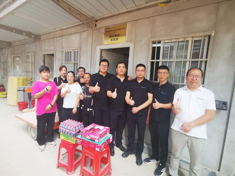 中秋佳節(jié)和國慶節(jié)即將來臨,為增強公司凝聚力,鼓舞奮斗在一線的員工,9月27日,中安科子公司威大醫(yī)療開展了主題為“迎中秋·慶國慶”的慰問活動。股份總部財務(wù)總監(jiān)、子公司威大醫(yī)療總經(jīng)理李翔、子公司威大醫(yī)療常務(wù)副總凌永山等相關(guān)領(lǐng)導(dǎo)分別深入到深圳市新華醫(yī)院項目部、深圳市吉華醫(yī)院項目部、深圳市中醫(yī)肛腸醫(yī)院項目部的施工現(xiàn)場,慰問在各項目部的一線員工,并為大家送去了水果以及節(jié)日的祝福。