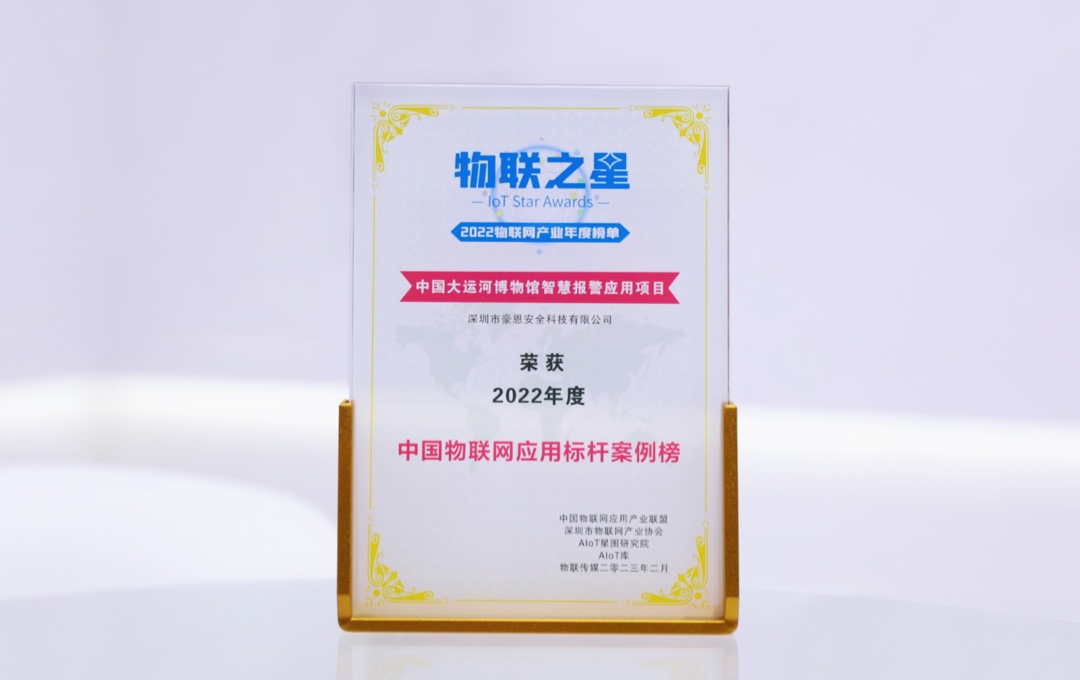 經(jīng)過多月的激烈角逐,中安科子公司豪恩的中國大運河博物館智慧報警應(yīng)用項目,從數(shù)百余家參評企業(yè)中脫穎而出,榮登2022“物聯(lián)之星”年度榜單之「中國物聯(lián)網(wǎng)應(yīng)用標桿案例榜」,成為豪恩博物館安防報警解決方案中的典型代表案例。