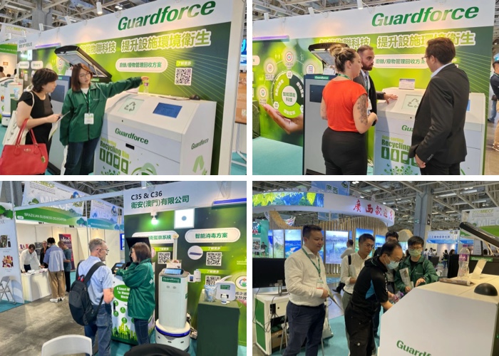 近日,2023年澳門國際環(huán)保合作發(fā)展論壇及展覽(2023 MIECF)圓滿結(jié)束。中安科子公司澳門衛(wèi)安(Guardforce)與多位國際環(huán)保精英互相交流,并為公眾介紹多個智能環(huán)衛(wèi)方案,包括智能垃圾箱、智能廚余回收箱、自動分類回收箱、UVC LED消毒燈、智能消毒機器人、智能空氣消毒機及智能環(huán)衛(wèi)監(jiān)察系統(tǒng)等等。