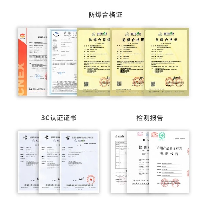 明景智慧能源防爆產(chǎn)品系列均已通過多項(xiàng)防爆檢測認(rèn)證,并獲得相應(yīng)的防爆合格證書、煤安證、本安證等。適用于含有煤塵、甲烷爆炸混合物環(huán)境場所,如:煤礦井下、礦山、隧道、石油、天然氣、地鐵等。